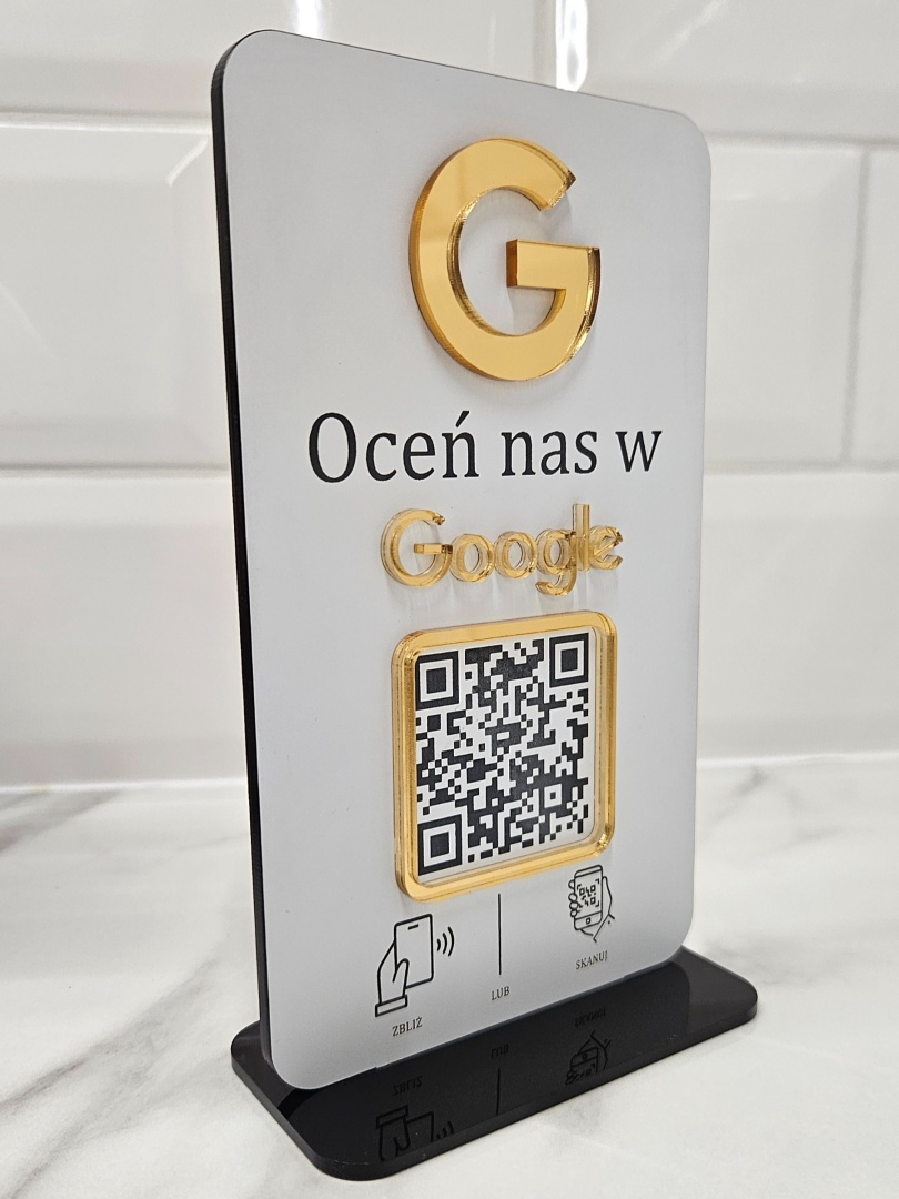 Standy z kodami QR do zeskanowania, prowadzącymi np. do social mediów, do Booksy, do płatności online lub też do wystawienia opinii na Google